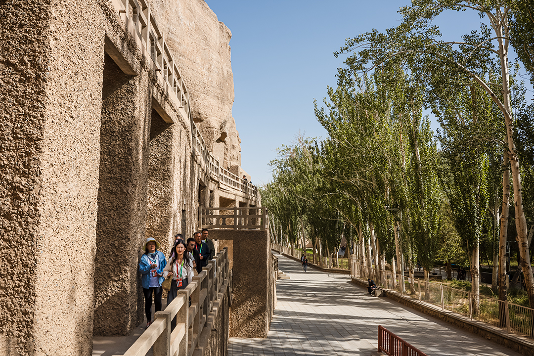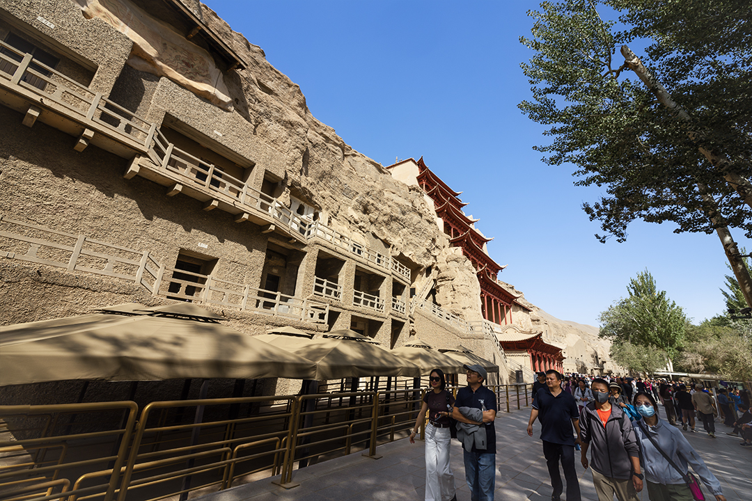 甘肅省 敦煌 敦煌位於古代中國通往西域、中亞和歐洲的交通要道——絲綢之路上,曾經擁有繁榮的商貿活動。境內有漢代所築的兩座長城關隘玉門關和陽關,均為軍事要塞,是漢唐王朝和西域的分界點。後人詩句「春風不度玉門關」、「西出陽關無故人」,以及古琴名曲「陽關三疊」等,都是指此處。今兩關及長城遺址尚存。附近還有懸泉置遺址,為漢晉時期的驛站遺址。