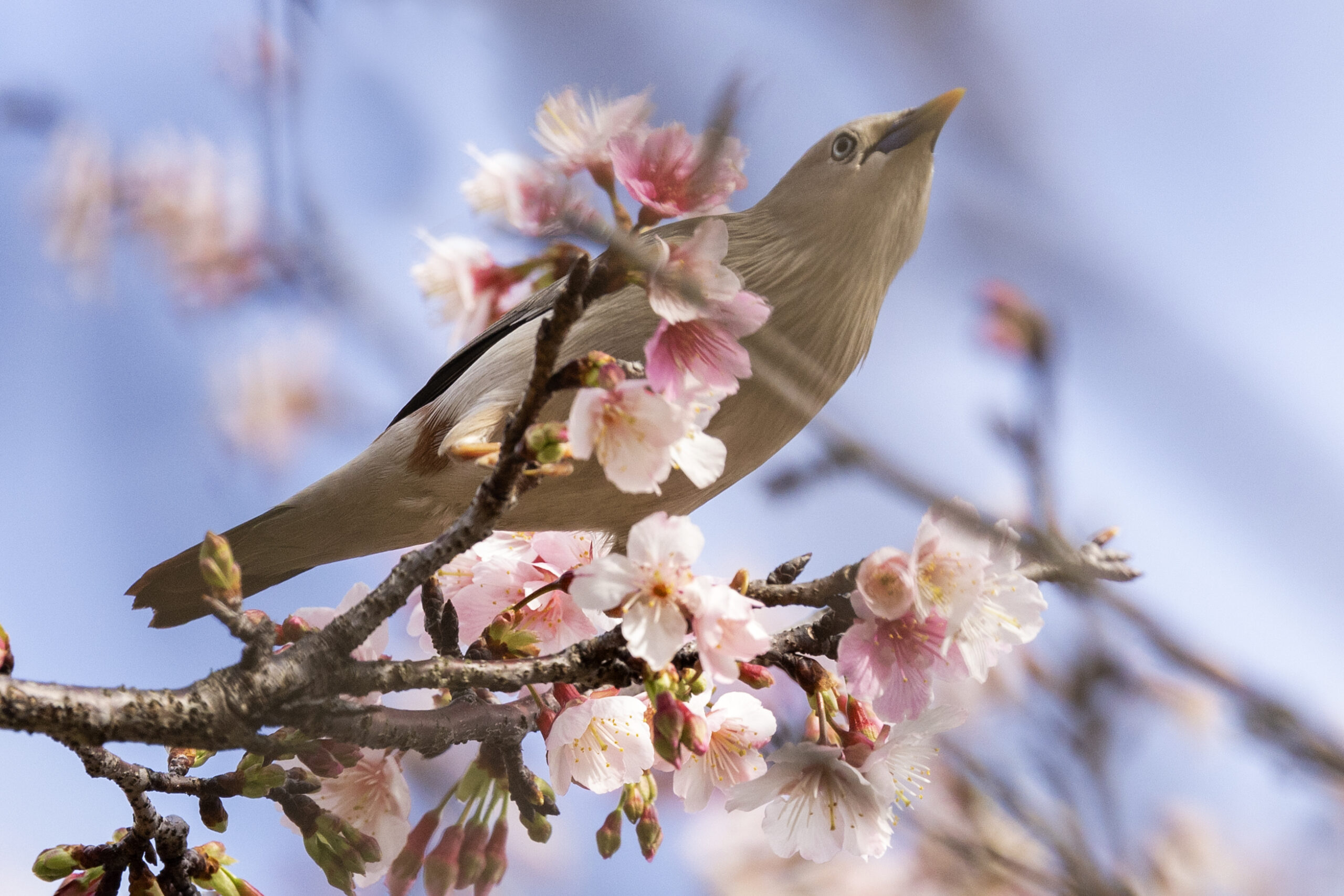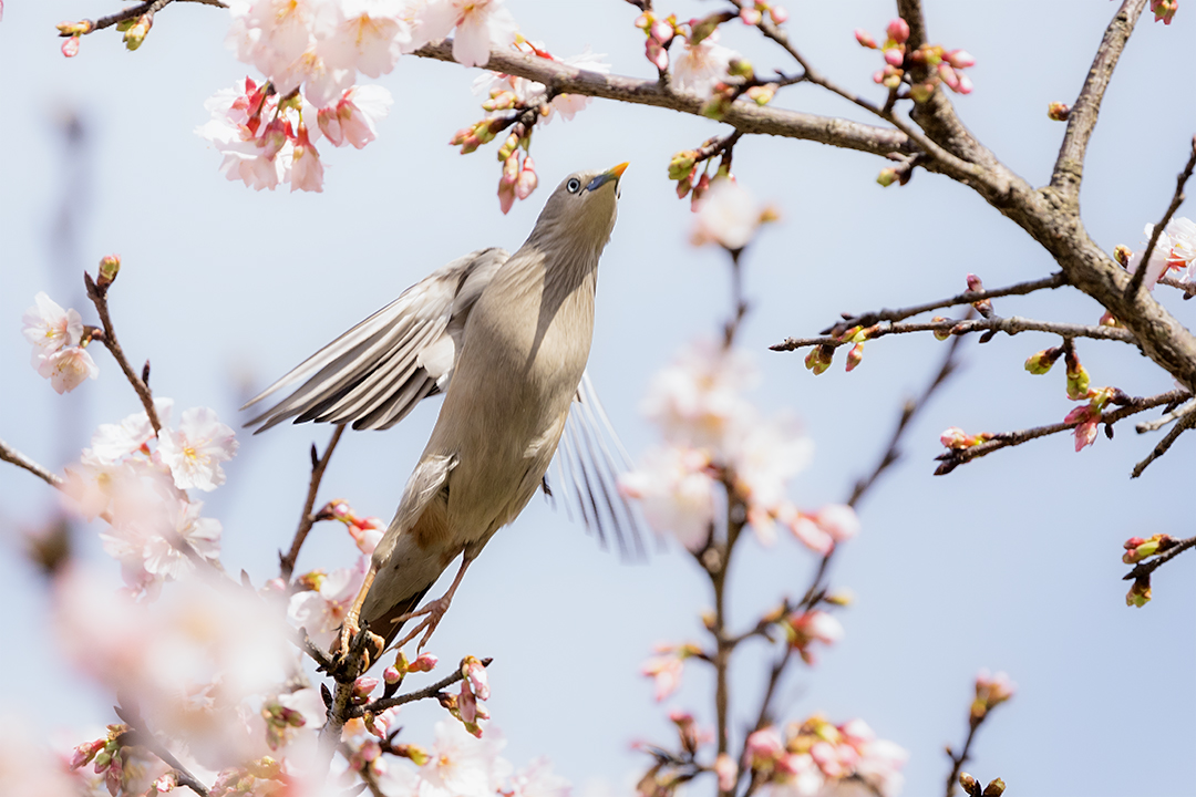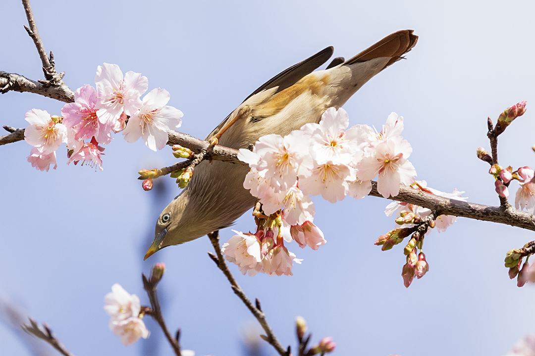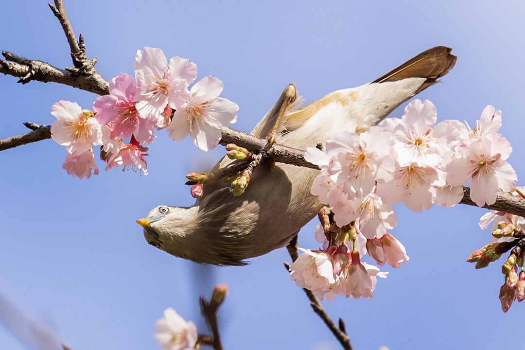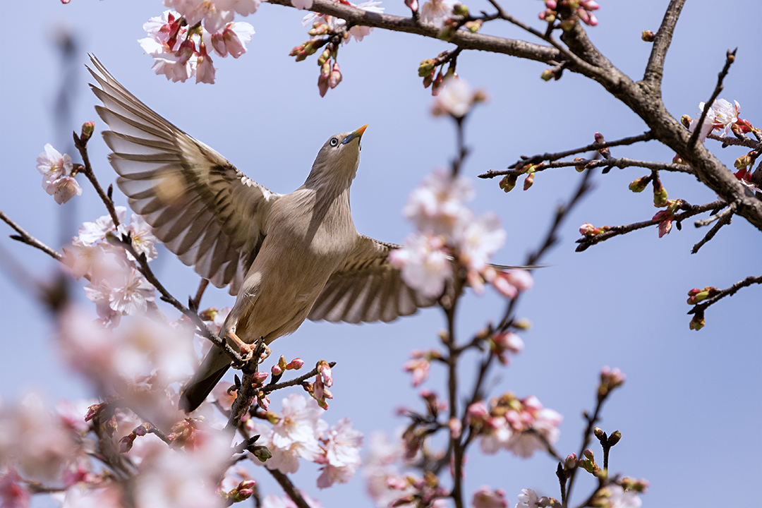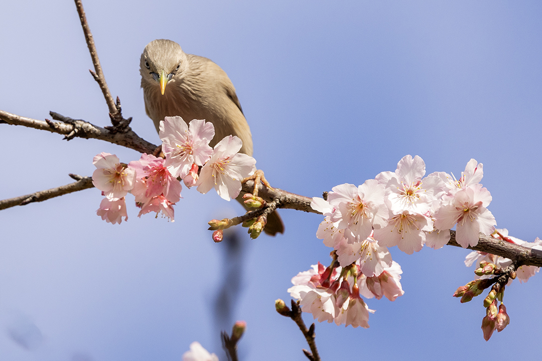 台北市 樂活公園寒櫻與栗尾椋鳥 在內湖樂活公園(LOHAS Park)正值樂活夜櫻季期間,櫻花盛開吸引了大量鳥類聚集覓食,是台北市區熱門的「花鳥圖」拍攝地點。每年 2 月至 3 月初 櫻花全盛期、鳥況最佳。其中栗尾椋鳥是該地最具代表性的鳥種,常成群在櫻花枝頭穿梭。